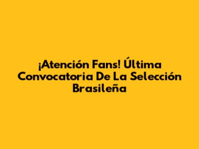 ¡Atención Fans! Última Convocatoria De La Selección Brasileña
