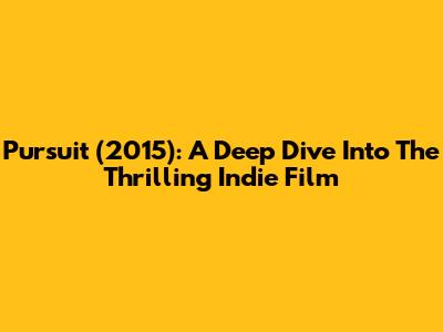 Pursuit (2015): A Deep Dive Into The Thrilling Indie Film