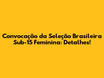 Hey pessoal! Notícia fresquinha e super animada para os amantes do futebol feminino! A Seleção Brasileira Sub-15 Feminina já tem suas convocadas para mais uma fase de preparação e, claro, a gente te conta tudo aqui! Prepare-se para conhecer as feras que vão representar o Brasil nos gramados e ficar por dentro de tudo o que rola nos bastidores. Vamos mergulhar nos detalhes da convocação, analisar as jogadoras, entender o que está por vir e, claro, vibrar com o futuro do futebol feminino no nosso país. ⚽🇧🇷