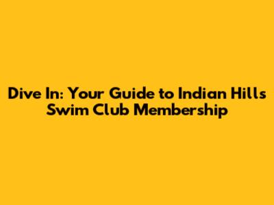 Unveiling the Indian Hills Swim Club: More Than Just a Pool