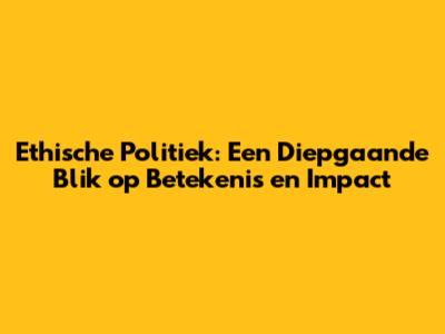 Wat is Ethische Politiek?