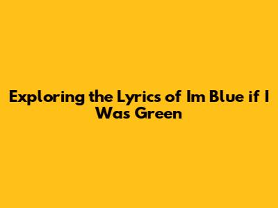 Exploring The Lyrics Of 'I'm Blue If I Was Green'