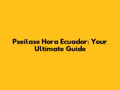 Pseilase Hora Ecuador: Your Ultimate Guide