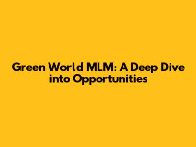 Green World MLM: A Deep Dive Into Opportunities