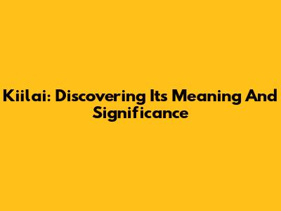 Kiilai: Discovering Its Meaning And Significance