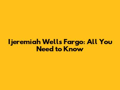 Ijeremiah Wells Fargo: All You Need To Know