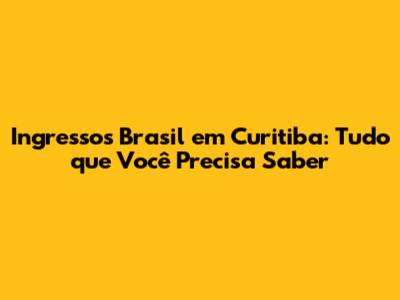Onde e Como Comprar Ingressos para o Jogo em Curitiba
