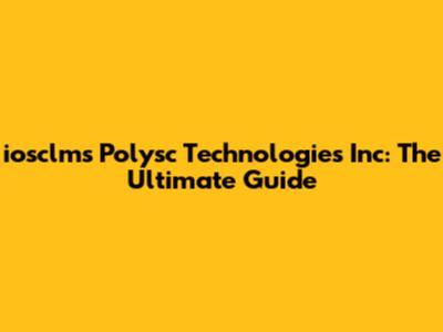 Iosclms Polysc Technologies Inc: The Ultimate Guide