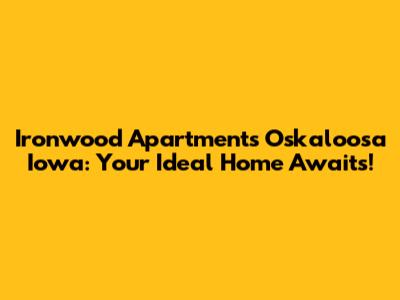 Hey guys! Looking for a sweet new place to call home in Oskaloosa, Iowa? Let's dive into everything you need to know about Ironwood Apartments! Finding the right apartment can be a real headache, but don't sweat it – we're here to make it easy peasy. We'll cover all the important stuff like location, amenities, apartment features, and how to snag one of these awesome units. So, buckle up and get ready to find your perfect spot in Oskaloosa!