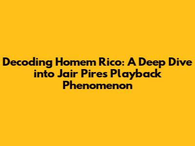 Hey music lovers, have you ever found yourself completely captivated by a song? That feeling of getting lost in the rhythm, the lyrics, the entire vibe? Well, today, we're diving headfirst into one such experience: Jair Pires' playback of 'Homem Rico'. This isn't just a song; it's an anthem, a story, a whole experience, and let's face it, a total earworm! We're going to break down why this playback has become such a phenomenon, the magic behind the music, and what makes it resonate so deeply with so many people. So, grab your headphones, get comfy, and let's explore the world of Jair Pires and his hit, shall we?