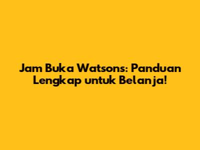 Jam Buka Watsons: Panduan Lengkap Untuk Belanja!