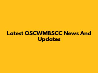 Latest OSCWMBSCC News And Updates