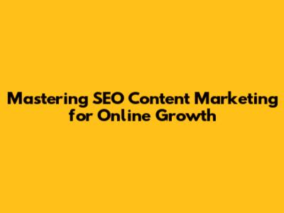 Mastering SEO Content Marketing For Online Growth
