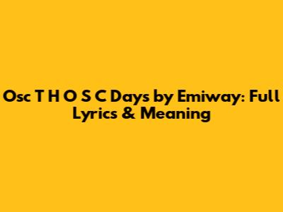"Osc T H O S C Days" - The Lyrical Breakdown