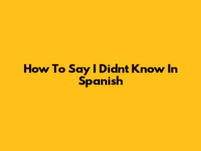 How To Say 'I Didn't Know' In Spanish