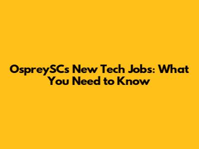 OspreySC's New Tech Jobs: What You Need To Know