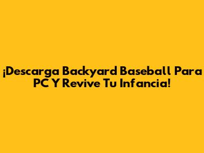 ¡Descarga Backyard Baseball Para PC Y Revive Tu Infancia!