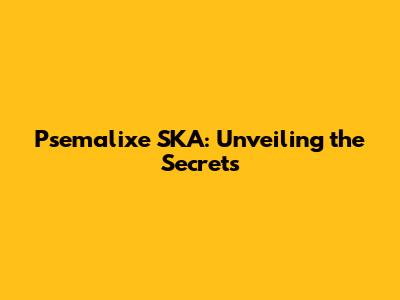 What Exactly Is Psemalixe SKA?