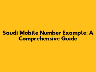 Saudi Mobile Number: Format And Example