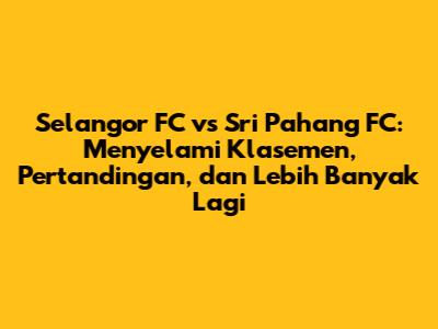 Selangor FC vs Sri Pahang FC adalah salah satu rivalitas menarik dalam kancah sepak bola Malaysia. Kedua tim memiliki sejarah panjang dan basis penggemar yang kuat, membuat setiap pertemuan mereka menjadi tontonan yang dinanti-nantikan. Artikel ini akan membahas secara mendalam tentang klasemen Selangor FC vs Sri Pahang FC, melihat rekam jejak pertandingan, menganalisis performa tim, dan menyoroti momen-momen penting yang terjadi di antara mereka.