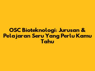 OSC Bioteknologi: Jurusan & Pelajaran Seru Yang Perlu Kamu Tahu