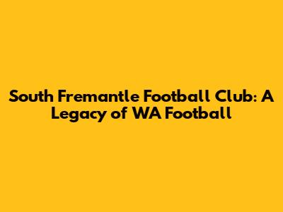 South Fremantle Football Club: A Legacy Of WA Football