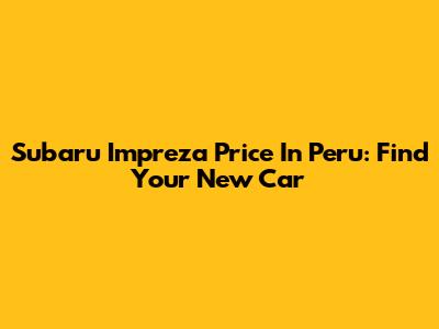 Subaru Impreza Price In Peru: Find Your New Car