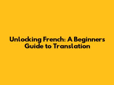 Unlocking French: A Beginner's Guide To Translation