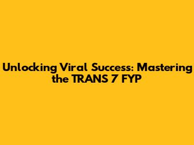 Okay, so what exactly is the TRANS 7 FYP all about? In essence, it's a strategic approach to optimizing your TikTok content to increase its chances of appearing on the coveted For You Page. The "TRANS" part refers to understanding the transitions and trends that are currently popular. The "7" likely alludes to the seven steps, strategies, or key elements you can focus on to improve your FYP performance, or the concept of the FYP itself. It's important to remember that the TikTok algorithm is constantly evolving, so what worked yesterday might not work today. This means staying updated on the latest trends and techniques is crucial! The goal is always the same: get your content seen by as many people as possible. The TRANS 7 FYP is your roadmap to achieve just that. This involves a combination of content creation, trend analysis, hashtag research, and understanding your audience.