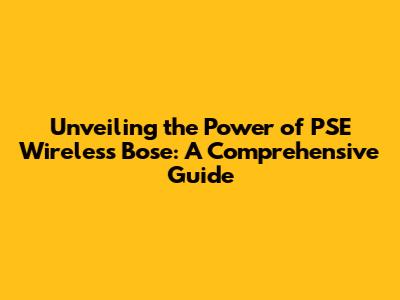 What Exactly is PSE Wireless Bose?