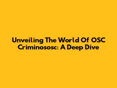 Unveiling The World Of OSC Criminososc: A Deep Dive